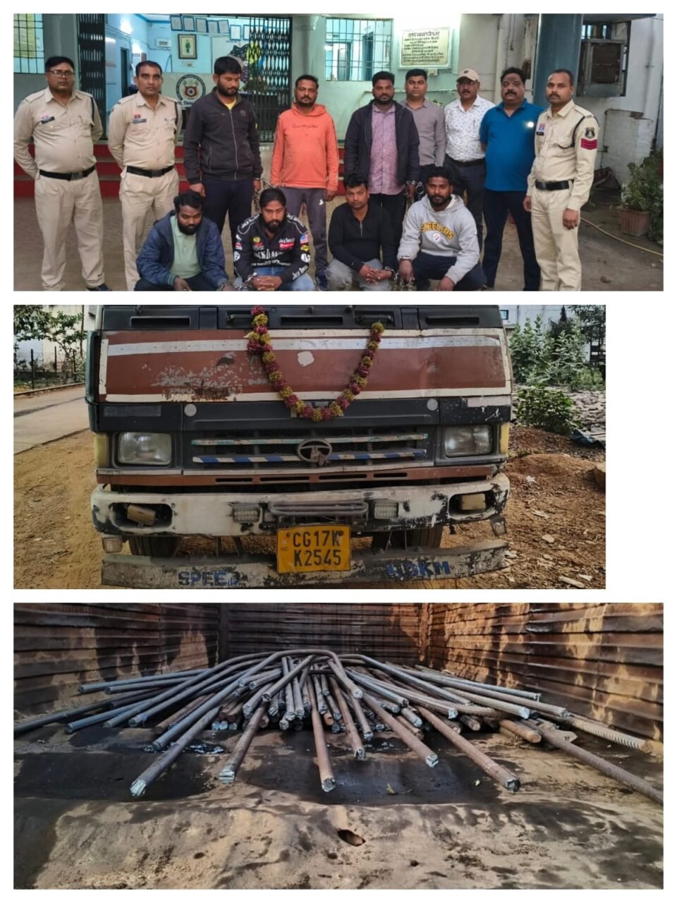धमतरी/पुलिस ने रेलवे निर्माण कार्य से जुड़ी बड़ी चोरी का सफल खुलासा करते हुए सात शातिर आरोपियों को गिरफ्तार किया है। पुलिस ने आरोपियों के कब्जे से लगभग 1.80 लाख रुपये मूल्य की 120 नग लोहे की सरिया तथा चोरी में प्रयुक्त मेटाडोर वाहन जब्त कर शत-प्रतिशत माल बरामद कर लिया है। यह कार्रवाई पुलिस अधीक्षक धमतरी के निर्देशन में संपत्ति संबंधी अपराधों पर सख्त नियंत्रण के तहत की गई।