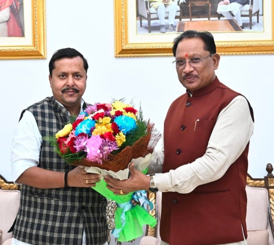 मुख्यमंत्री विष्णु देव साय से आज राजधानी रायपुर स्थित मुख्यमंत्री निवास कार्यालय में बिहार के पथ निर्माण मंत्री नितिन नवीन ने सौजन्य मुलाकात की।