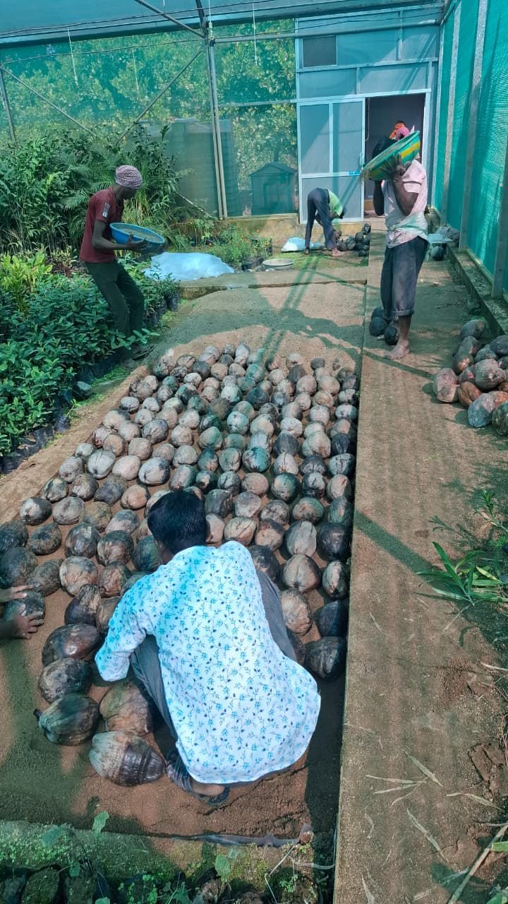 फसल चक्र परिवर्तन से समृद्धि की ओर: धमतरी में नारियल आधारित उद्यानिकी को नया आयाम सीड नट से गुणवत्तापूर्ण नारियल पौध,सेमरा रोपणी में