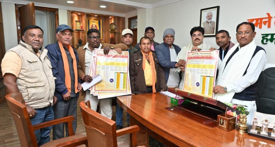 07दिसंबर को धमतरी के स्व. विष्णुप्रसाद हिरवानी एकलव्य खेल परिसर में आयोजित होने वाले धीवर समाज के प्रदेश स्तरीय युवक युवती परिचय सम्मेलन के पोस्टर का विमोचन मुख्यमंत्री विष्णुदेव साय एवं रामू जगदीश रोहरा, महापौर द्वारा किया गया ।