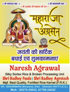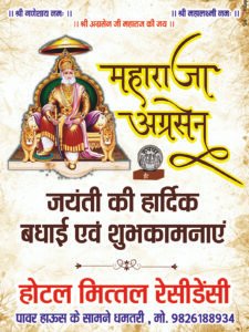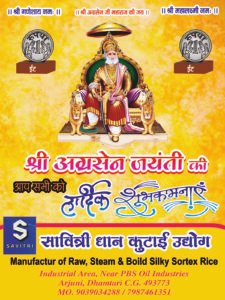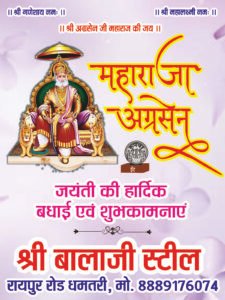 धमतरी/अग्रवाल समाज के आराध्य महाराज अग्रसेन की जयंती के अवसर पर इंडियन जागरण परिवार की ओर से प्रदेशवासियों को हार्दिक बधाई और शुभकामनाएँ दी गईं। महाराज अग्रसेन ने अपने जीवन में परोपकार, भाईचारा और समरसता का संदेश दिया था। उनके बताए मार्ग पर चलकर ही समाज और राष्ट्र को मजबूत बनाया जा सकता है।