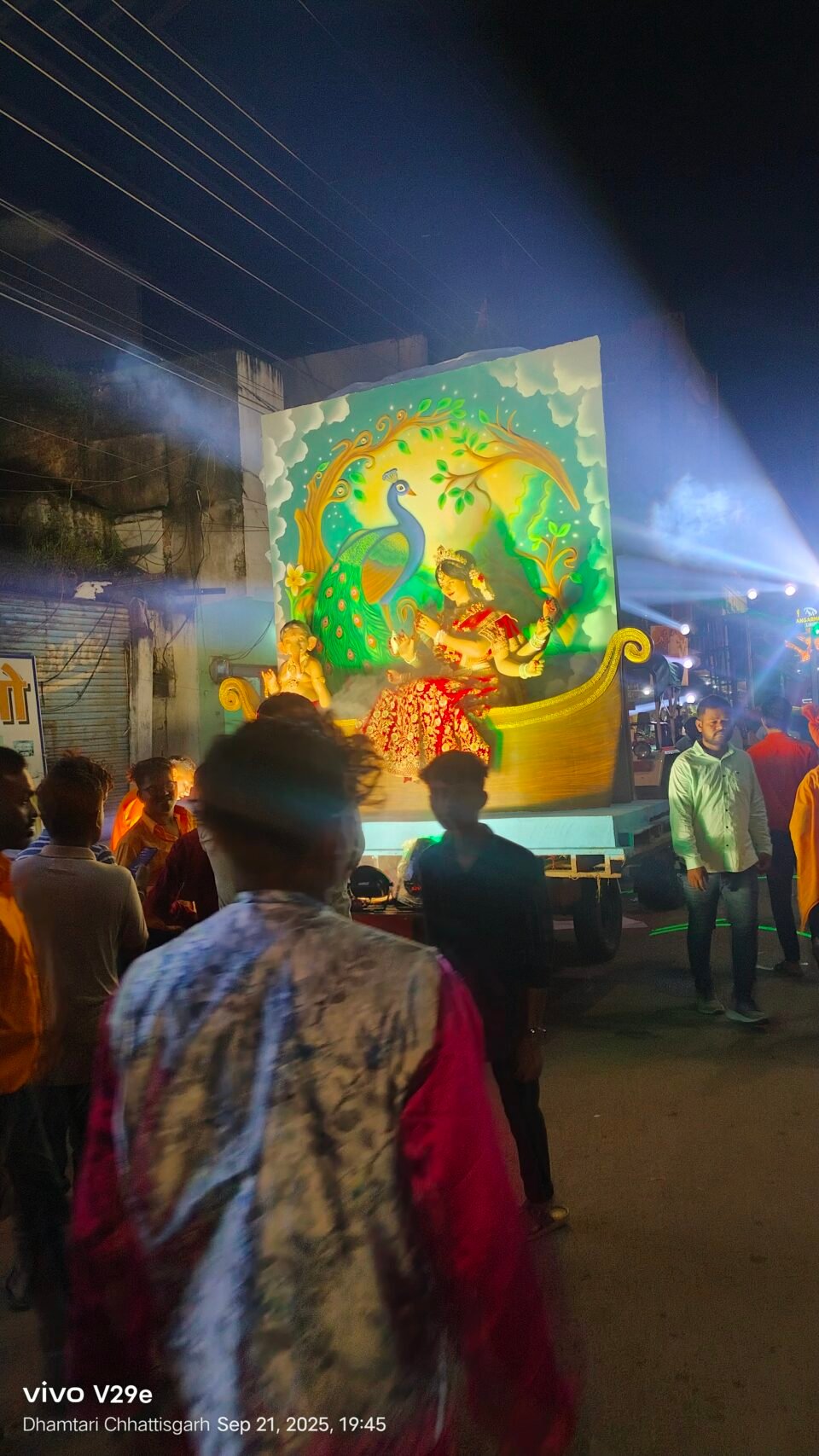 शाम से ही निर्धारित स्थानों से माता रानी की प्रतिमाओं को विशेष रूप से सजाए गए वाहनों में शोभायात्रा के रूप में निकाला जा रहा है। ढोल-नगाड़ों और बैंड-बाजों की गूंज के बीच भक्तजन जयकारे लगाते हुए चल रहे हैं। रास्ते में श्रद्धालु पुष्प वर्षा कर माता रानी का स्वागत कर रहे हैं, जिससे पूरा वातावरण आस्था से सराबोर हो गया है।