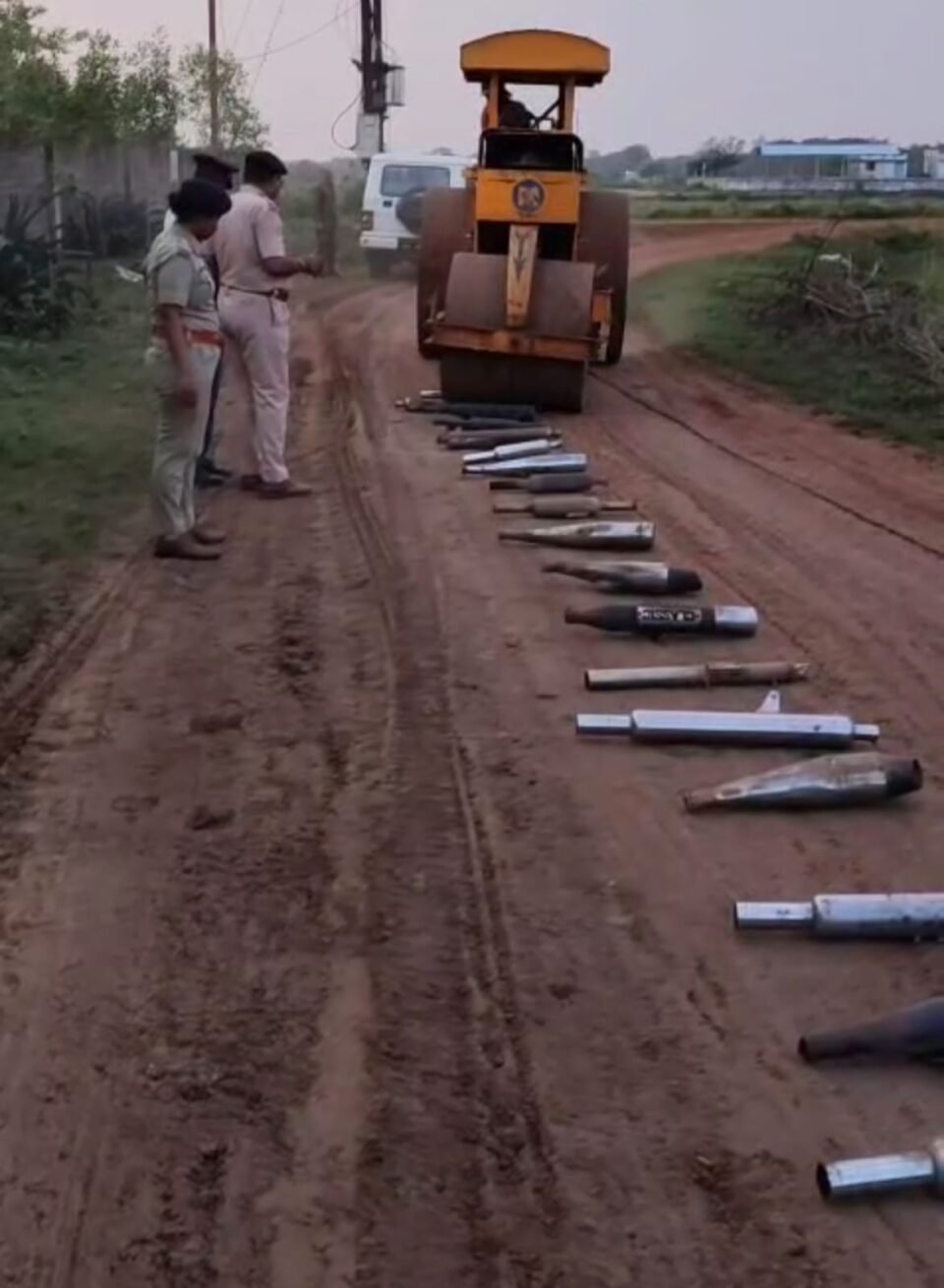 धमतरी/धमतरी पुलिस ने यातायात शाखा के विशेष अभियान के तहत बड़ी कार्रवाई करते हुए लगाए गए अवैध मोडिफाईड सायलेंसरों पर शिकंजा कसा। पुलिस ने 50 से अधिक बुलेट मोटरसायकल से मोडिफाईड सायलेंसर जब्त किए और उन्हें थाने परिसर में रोड रोलर चलाकर सार्वजनिक रूप से नष्ट कर दिया।