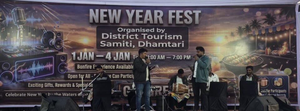 धमतरी/नववर्ष 2026 के स्वागत में जिला प्रशासन एवं जिला पर्यटन समिति, धमतरी के संयुक्त तत्वावधान में गंगरेल बांध परिसर में आयोजित चार दिवसीय भव्य “न्यू ईयर फेस्ट” पूरे उत्साह और उमंग के साथ जारी है। उत्सव के दूसरे दिन बड़ी संख्या में पहुंचे पर्यटकों ने संगीत, सांस्कृतिक प्रस्तुतियों और मनोरंजन गतिविधियों का भरपूर आनंद लिया।