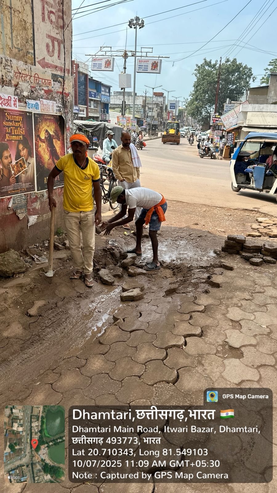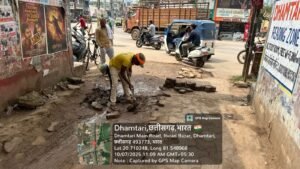 धमतरी/ नगर निगम के लोक निर्माण विभाग के सभापति विजय मोटवानी के सक्रिय नेतृत्व में शहर की सड़कों के सुधार कार्य तेजी से जारी हैं। इसी क्रम में मकई गार्डन मोड़ में पेवर ब्लॉक धंस जाने की शिकायत मिलते ही सभापति ने तत्काल मौके पर पहुंचकर निरीक्षण किया। यह से दिनभर राहगीर और वाहन चालकों की आवाजाही बनी रहती है। धंसे हुए ब्लॉक के कारण लंबे समय से लोगों को असुविधा हो रही थी। विजय मोटवानी ने निरीक्षण के दौरान निगम के इंजीनियर और कर्मचारियों को निर्देश दिए कि कार्य में किसी प्रकार की लापरवाही न हो तथा दो दिवस के भीतर मरम्मत कार्य पूर्ण किया जाए। उन्होंने कहा कि जनता की सुविधा सर्वोपरि है, और किसी भी स्थान पर सड़क या पेवर ब्लॉक की समस्या मिलने पर तुरंत कार्रवाई की जाएगी। उनके निर्देश के बाद आज सुबह से ही मरम्मत कार्य प्रारंभ हो गया है। ठेकेदार द्वारा टूटे हुए ब्लॉकों को हटाकर नई बेस डालकर मजबूती से पेवर ब्लॉक पुनः जमाए जा रहे हैं।